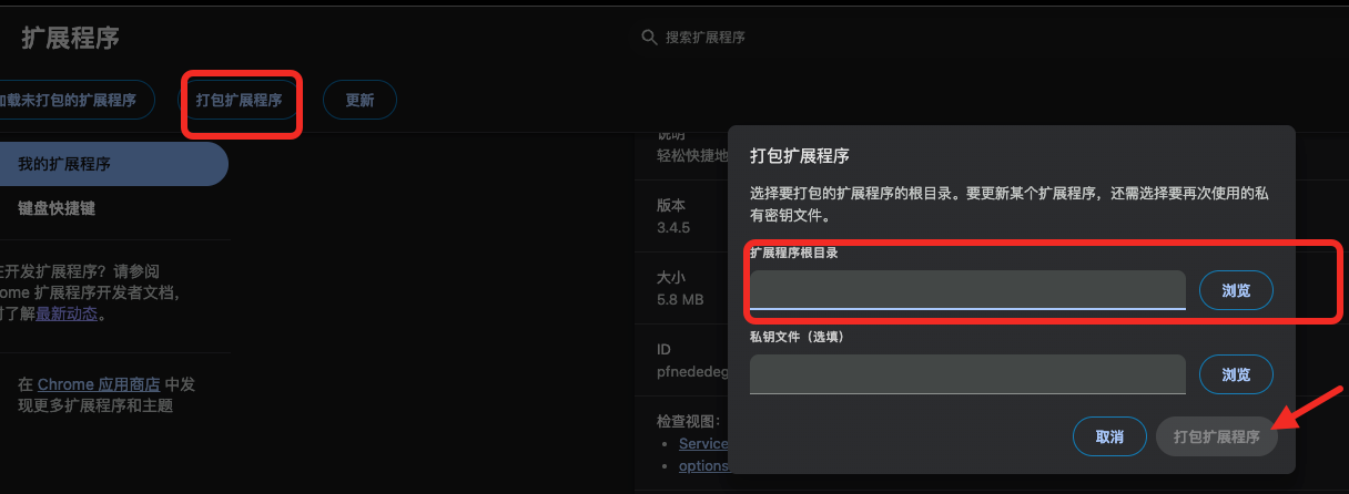 3.选择要打包的扩展程序目录(根据扩展程序id选择)